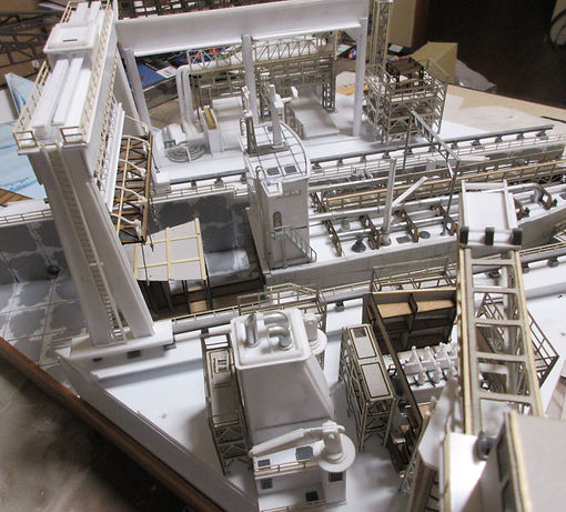 キットは1/144ドイツレベルフラワー級スノ-ベリ-、造船所の設備や構造物はプラ板や棒・ボ-ル紙・MDF材にてフルスクラッチ、また150体